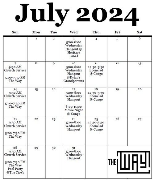 It's a great summer to be involved with The Way Youth Group! Check out the calendar, battle plans, and join us as we strive to grow like Jesus.